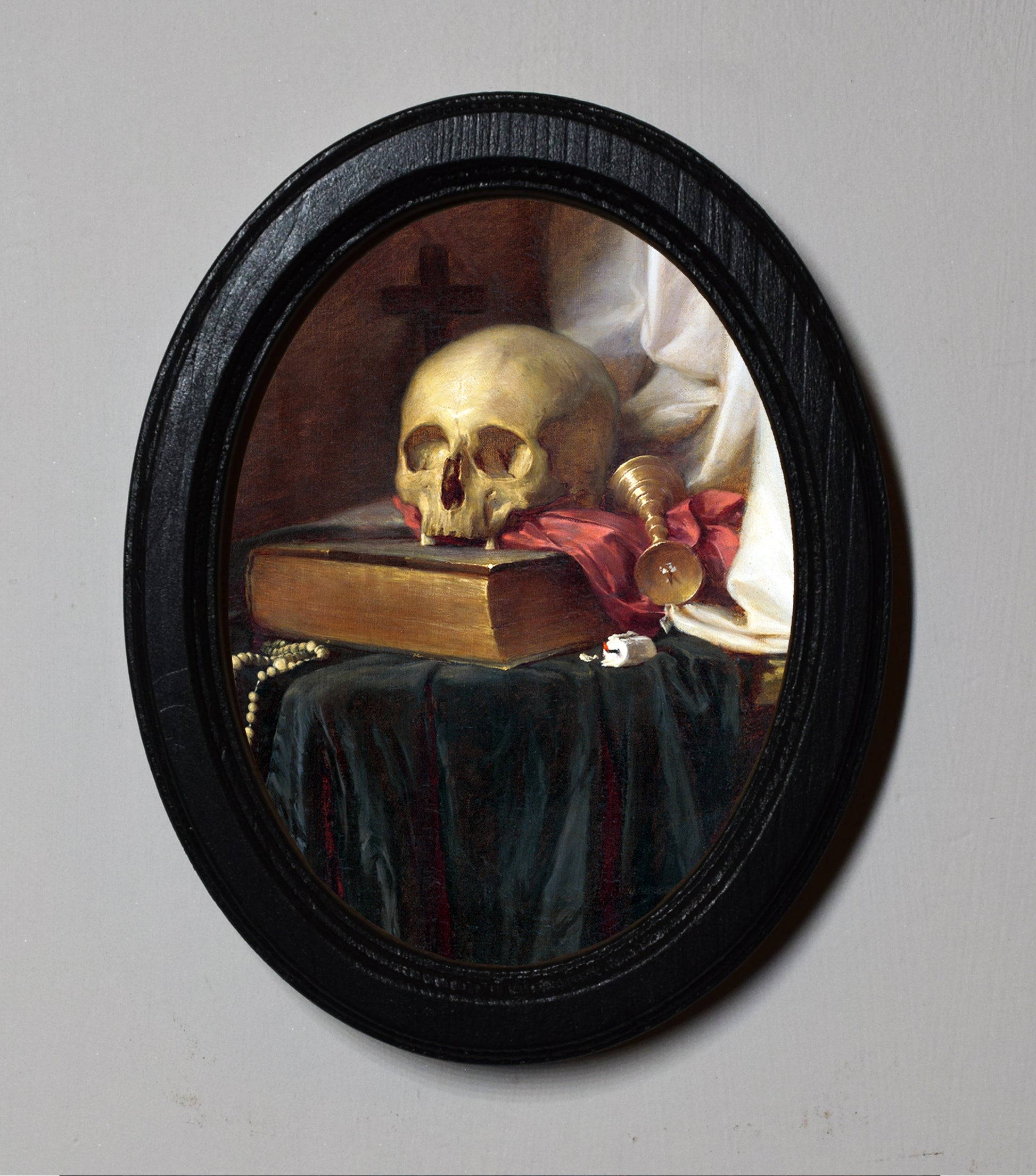Skull On Books Spooky Halloween Oval Wooden Framed Print